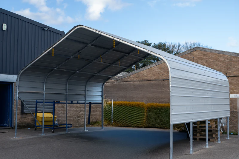 Verzinkte Stahlrahmen kombiniert mit Stahlverkleidung oder strapazierfähigem PVC-Gewebe bieten hohe Festigkeit, geringen Wartungsaufwand und schnelle Montage. Wir empfehlen Stahlverkleidung für permanente Scheunen und PVC für kostengünstige, flexible Lösungen, die nicht für den Dauereinsatz benötigt werden.