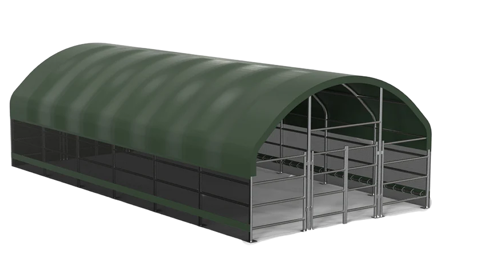 Unsere geschlossenen Viehunterstände punkten mit einem zuverlässigen Witterungsschutz und bieten dadurch eine sichere Unterbringung für Rinder, Schafe, Ziegen und andere Nutztiere. Die modulare Konstruktion wurde für den ganzjährigen Einsatz gedacht und gewährleistet zuverlässigen Schutz vor Niederschlag, Wind, Kälte sowie intensiver Sonneneinstrahlung.