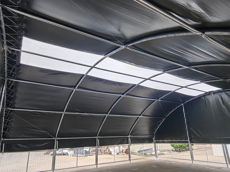 PVC-Gewebeabdeckung: Für unsere mit Gewebe verkleideten Modelle hat die robuste PVC-Abdeckung eine erwartete Lebensdauer von etwa 15 Jahren, unterstützt durch eine 5-jährige Herstellergarantie. Abdeckungen können am Ende ihrer Lebensdauer ohne Austausch des Stahlrahmens ersetzt werden, was Aufrüstungen einfach macht.