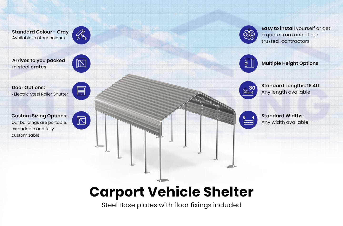 - Verkleidung: Sowohl unsere nicht isolierten als auch Sandwich-Verkleidungsoptionen werden durch eine 6-jährige Garantie unterstützt, die Ihnen Sicherheit für Ihre Investition bietet. Kit Buildings