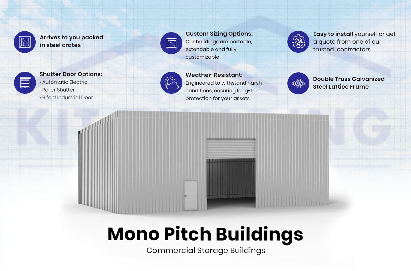 Permanente, semi-permanente en tijdelijke faciliteiten bedoeld voor zakelijke opslag en operationele vereisten. We bieden ook Mono Pitch, Lean to structuren aan.